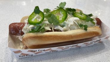 Ketchup, mustard, mayo, onions, pickled jalapeños, relish